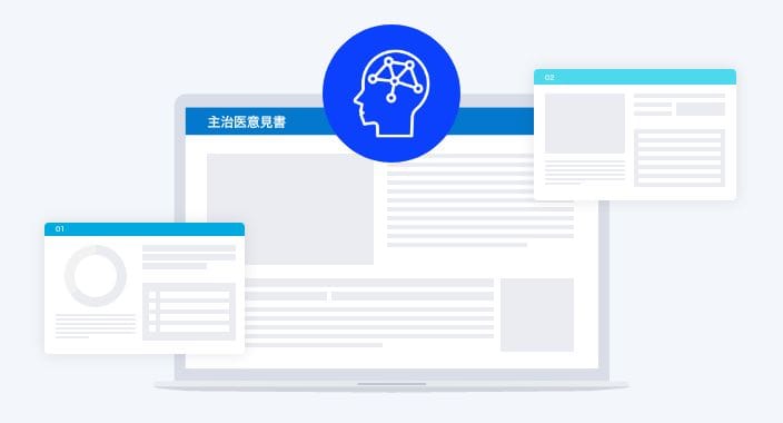 AIがhomis内に蓄積された大量の診療情報を自動的に解析し、主治医意見書などを自動作成します。